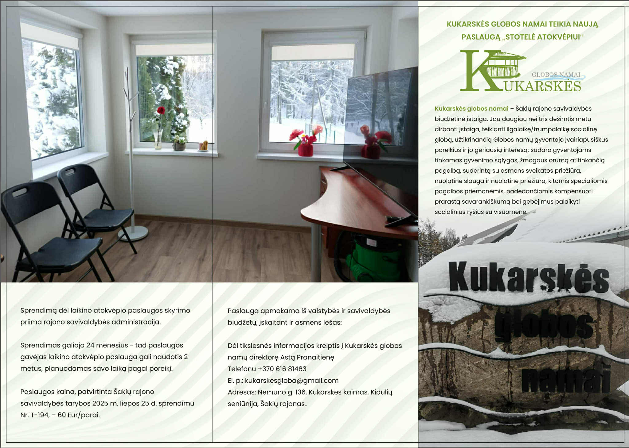 Dėl išsamesnės informacijos kreiptis į Kukarskės globos namų direktorę Astą Pranaitienę, telefonu +370 616 81463 arba el.paštu